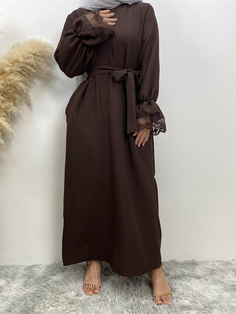 - الاسم: فستان طويل أنيق لرمضان بدانتيل من الأكمام