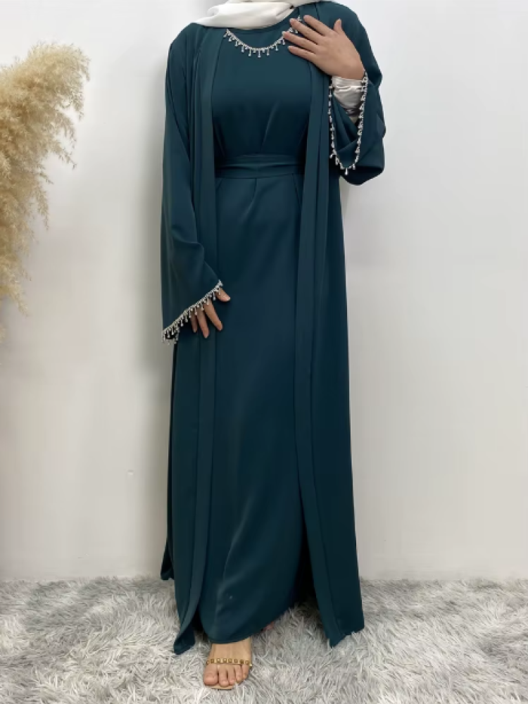 - الاسم: عباية إسلامية مع الكفة الخرز للنساء